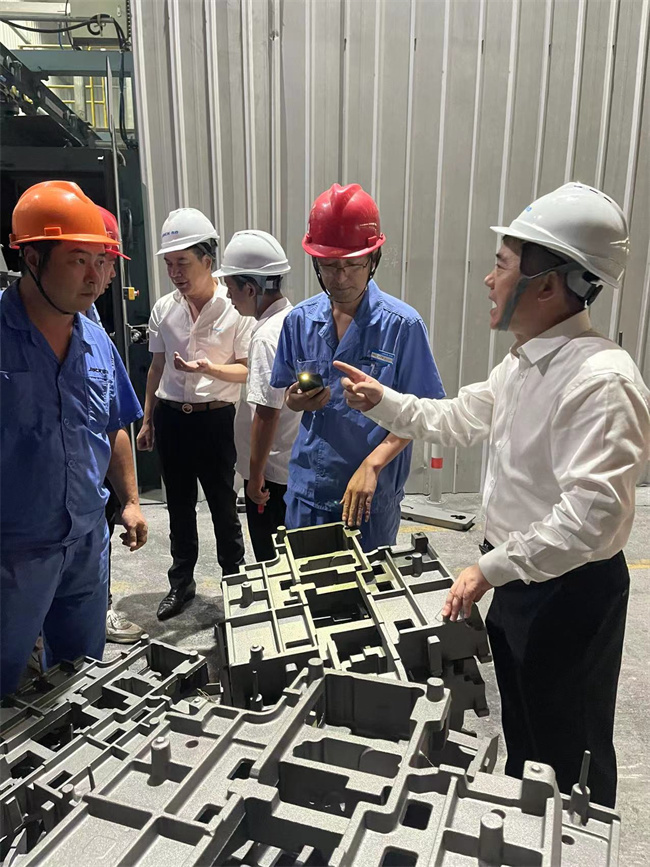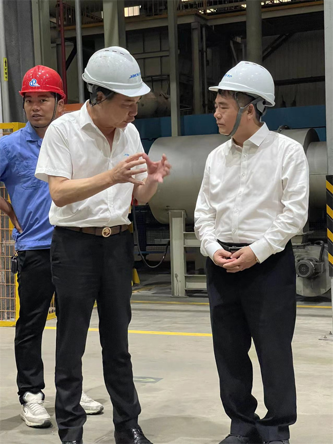 全程參觀活動,從熔煉車間,到智能機加工車間,再到裝配車間……,杰克集團阮董全程做了詳細的講解介紹。